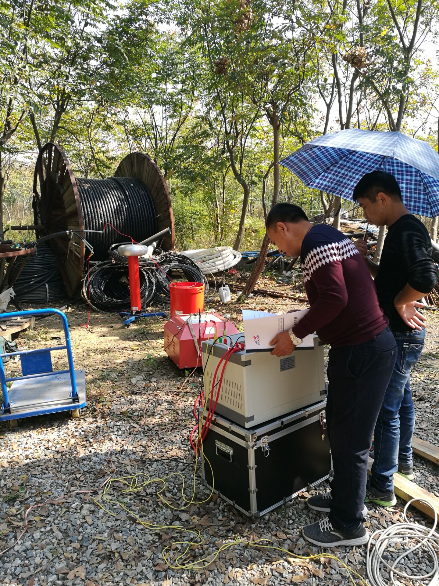 此次培訓(xùn)的主要設(shè)備是我公司的優(yōu)質(zhì)產(chǎn)品:YTC850-1000kVA/200kV 變頻串聯(lián)諧振試驗(yàn)裝置,李工首先對設(shè)備的原理和功能進(jìn)行了全面而細(xì)致的講解。該裝置主要針對35kV、110kV電纜,110kV 及以下電壓等級GIS,開關(guān),互感器等電氣設(shè)備,220kV及以下主變中性點(diǎn)的交流耐壓試驗(yàn),該裝置主要由變頻電源、勵(lì)磁變壓器、高壓電抗器、電容分壓器組成。具有過壓、過流、零位啟動(dòng)、系統(tǒng)失諧(閃絡(luò))等保護(hù)功能,具有全自動(dòng)模式、手動(dòng)模式、自動(dòng)調(diào)諧手動(dòng)升壓模式三種工作模式,方便用戶根據(jù)現(xiàn)場情況靈活選擇,提高試驗(yàn)速度。