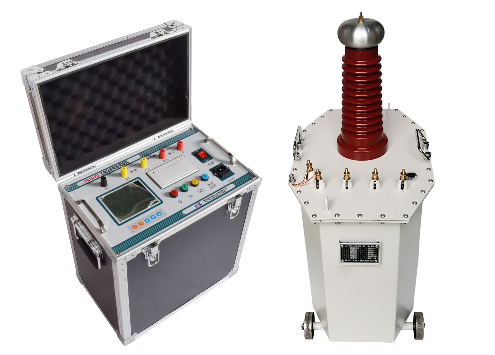 工頻交流耐壓試驗儀由油浸式試驗變壓器與控制箱(臺)組成,其中控制箱(臺)為一體化裝置,集成調(diào)壓器、測量單元、控制單元及保護單元等核心組件。