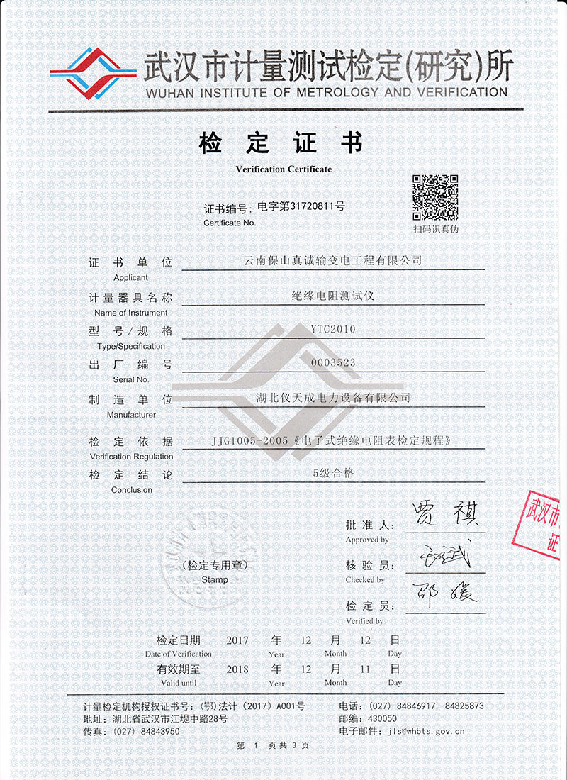 10、高壓短路電流≥3mA,是測(cè)量大型變壓器、互感器、發(fā)電機(jī)、高壓電動(dòng)機(jī)、電力電容、電力電纜、避雷器等絕緣電阻的測(cè)試儀器。