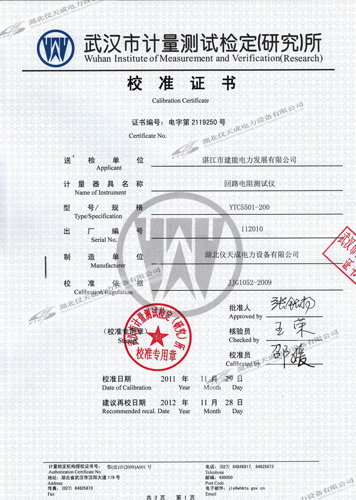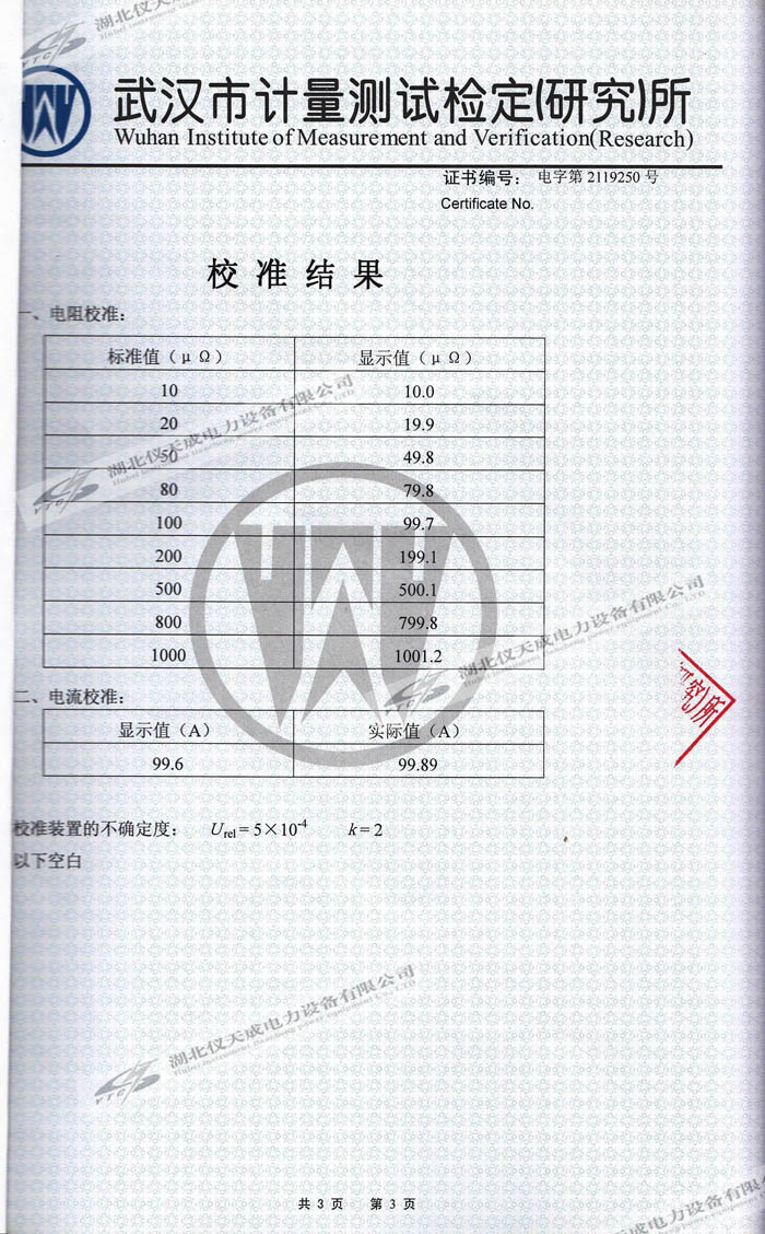 轉載:"YTC5501-200A回路電阻測試儀的資質證書" 請注明來源于儀天成電力。 更多技術問題請致電儀天成電力客戶服務:027-87876585,技術部專線:027-87876585,在線客服:719388481